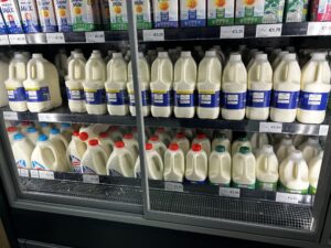 乳製品の棚割りの大きさ、牛乳価格の安さ(水より安価)、搾りたて牛乳の自販機など、日常生活の中で酪農がいかに根付いているかを実感できる視察となりました。