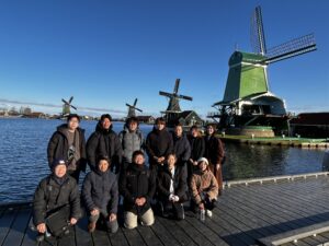 風車村ザーンセスカンスで伝統的建築とオランダの水管理の歴史を見学し、昼食後にはアムステルダム市内観光へ行きました。