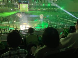 試合会場に着くなり、レバンガチアダンスチームによるド派手な演出がお出迎え💃